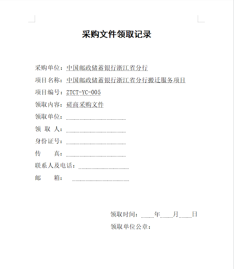 1、項目名稱:中國郵政儲蓄銀行浙江省分行搬遷服務項目。