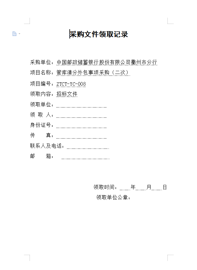 5.2 紙質投標文件遞交地點:衢州市柯城區白云中大道9號慧谷大廈郵儲銀行衢州市分行。